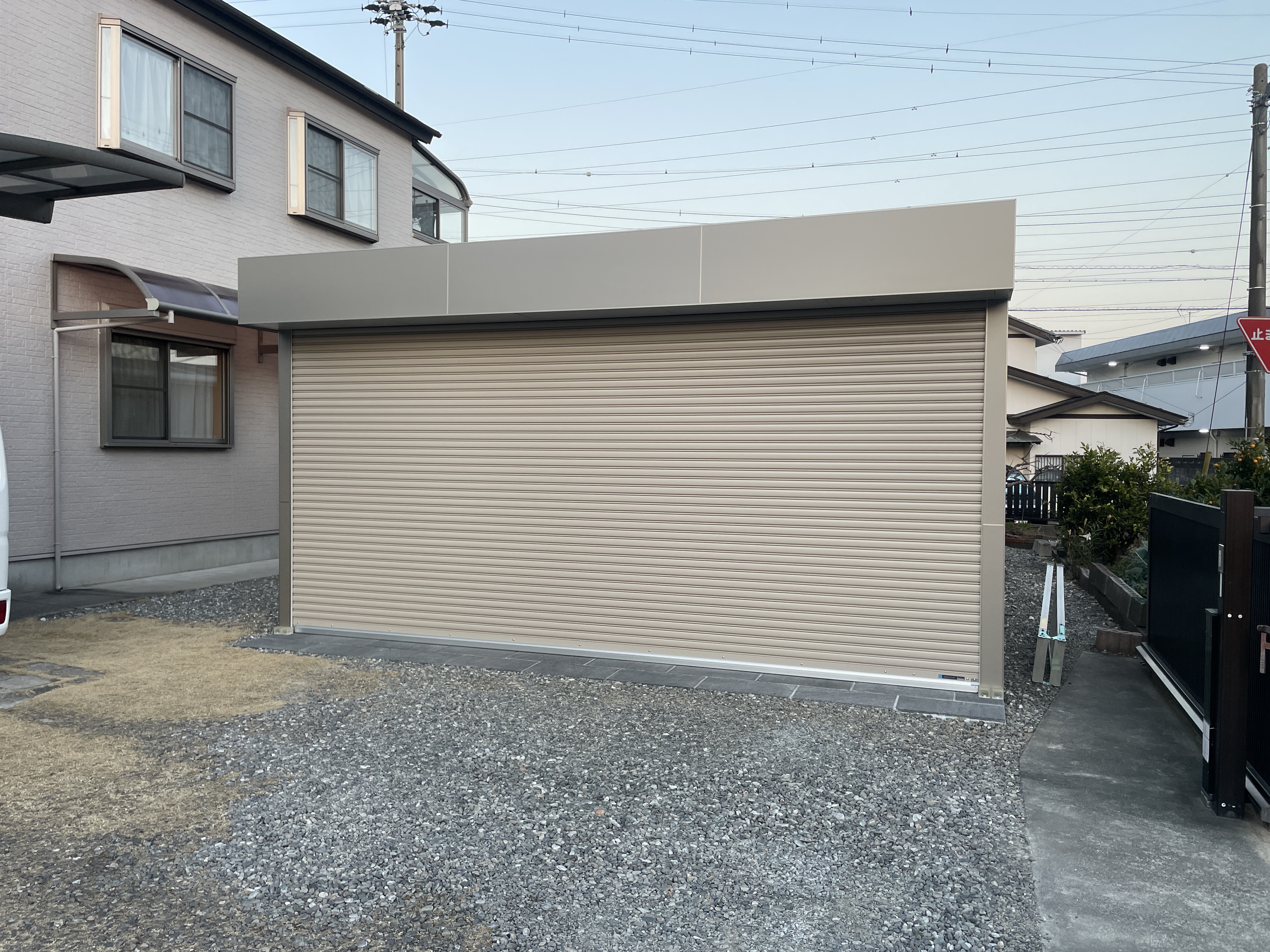 LIXILのエクステリアフレーム「プラスG」をベースに、 シャッター付きのオリジナルカーゲートを設計・施工しました。